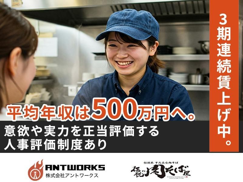 仕事内容 \2025年5月オープン/ 💡伝説の肉そば屋で一緒に働きませんか? 私たちは「食事」を通じて、 お客様の「底力」を引き出し、 明日への活力を提供することを 大切にしています。 この理念は働く仲間も同じです! あなたの成長が会社の成長につながる、 そんな環境で一緒に働きましょう! ✅仕事内容 ・売上管理や日報作成 ・スタッフの採用/教育や接客 ・仕込みや調理(マニュアル完備で安心) ・コスト管理 ・QSCの追求 最初はスタッフからスタート。 店舗運営に必要なスキルをしっかり学び、 成長に合わせて店長やマネジメント職へとステップアップできます。 最短3ヶ月〜半年で店長昇格も可能。 年齢や社歴に関係なく、成果と意欲を正当に評価します! ✅未経験でも安心 「飲食店経験がない」 「数字が苦手」 でも心配なし! 私たちのパーパス経営では、 社員一人ひとりの成長を最大限サポートしています。 入社後は、店舗運営や経営スキルを学べる 充実の教育プログラムを用意しています。 トレーナーによる丁寧なレクチャーと、 実践的なカリキュラムを通じて、 最短で”一生モノの店舗運営スキル”を身につけることができます。 ✅教育・成長サポート 現場でのOJTに加え、専門の教育部門を完備し、 会社として全面的にバックアップ。 数字が苦手な方でも、プロの視点を養える研修を充実 あなたの成長を全力でサポートする体制が整っています。 ✅キャリアアップ 店長後は、SV(スーパーバイザー)や商品企画、FCオーナーの教育など、 幅広いキャリアパスがあります。 成長し続けられる環境で、あなたの底力を試してみませんか?