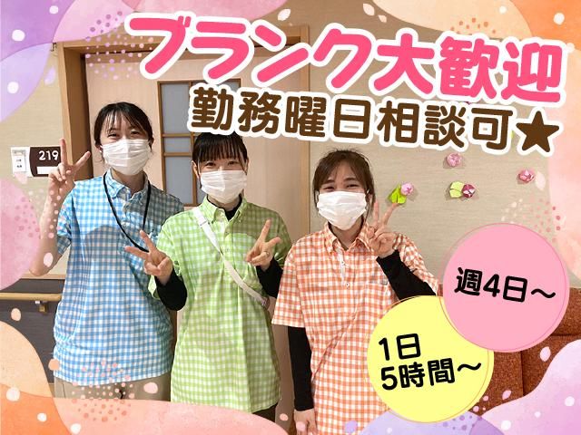 仕事内容 ・食事や入浴の介助 ・排せつ、着替え等のお手伝い ・レクリエーションなどの補助など ※施設には記録業務支援システムを導入しております。 スタッフの業務量削減に努め、効率的に記録業務を進めています! ※お風呂介助やトイレ介助の際、福祉用具が充実しているので体の負担が少なくすみます。 ◆スタッフインタビュー◆ 勤続2年、育休復帰後 9:00~16:00パート勤務のYさん (休憩1時間) 【1日の流れ】 朝出勤後 ●担当制でフロア担当と入浴介助担当に分かれる ~入浴介助担当~ 1日7,8人の入浴介助(職員2名にて) 午前中は入浴介助で終わることも! ~フロア担当~ ・飲み物準備 ・排泄介助 ・利用者さんのお部屋の環境整備 ・利用者さんとのアクティビティ ●お昼ご飯 1時間の休憩 ●歯ブラシの片付け等 身の回りのお手伝い ●翌日の準備 14:00~ カンファレンス:スタッフさん同士で利用者さんの情報共有 15:00~ おやつの準備 16:00 退社 残業はほぼありません! Q:入社のきっかけは? A:前職では管理職をしており、責任もやりがいもありましたが、その分残業も多く、結婚をきっかけにプライベートとの両立が難しくなって転職を考えました。 いくつかの職場を検討する中で、今まで経験したことのない部署に挑戦したいと思い、この会社を見つけました。 会社としての取り組みがしっかりしていて、さまざまな施設や部署がある点にも魅力を感じ、ここで働こうと決めました。 Q:やりがいは? A:人相手のお仕事だから感謝が直接伝わることが嬉しいです。 利用者さんが喜んでくれたり、笑顔になってくれるとこのお仕事をやっててよかったと思います。 Q:大変なことは? A:多職種連携です。介護施設には介護職、看護職と違った職種の人が一緒に勤務しています。 その中で、利用者さんのことを看護目線、介護目線と違った方向から見ているのでそこのすり合わせが難しいなと感じます。 Q:職場の雰囲気 A:20代~60代まで幅広い年齢の方が働いていますが意見交換等は積極的に行えています。 Q:これから一緒に働く仲間へメッセージを A:人と接する仕事は、難しく考えなくて大丈夫。 「自分だったらどうしてほしいかな」と置き換えて、同じ人として寄り添う気持ちがあれば十分です。 周りにはいつも仲間がいます。 困ったときは一人で抱えず、頼ってくださいね。 無理せず、肩の力を抜いて、迷っている方はぜひ一緒にがんばりましょう!