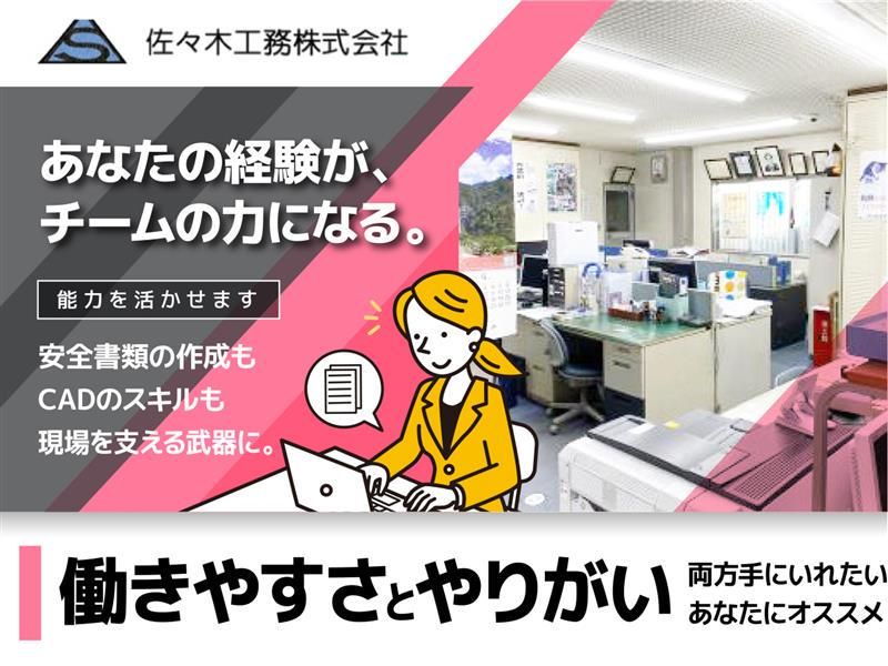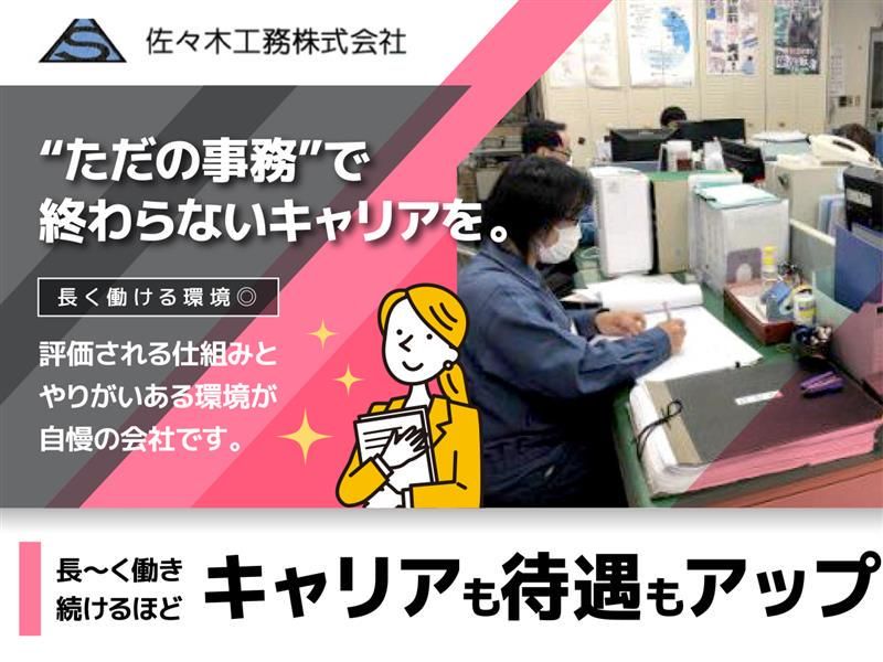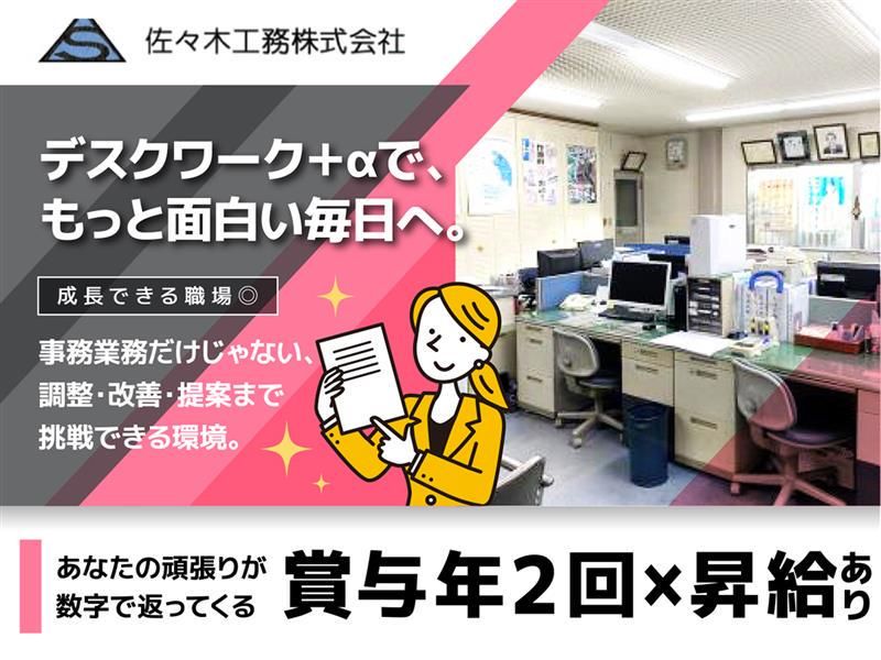 仕事内容 \魅力ポイント✨/ ✅年間休日136日(有給10日含む)/土日祝休み ✅賞与年3回・昇給あり/毎年給与アップ実績あり ✅会社から徒歩5分の所に社宅あり! ✅残業原則ゼロ(繁忙期に月10時間以内) ✅社内イベントや旅行あり(今年は伊豆箱根)/新年会・忘年会・BBQ ―――あなたの「実務経験」が、 しっかり評価される環境です。――― 創業83年の「佐々木工務株式会社」で 建設現場を支える【営業事務】を募集! 大手百貨店や商業施設など、 人が集まる空間づくりを支えてきた当社。 今回は、安全書類・CAD・グリーンサイト などの実務経験をお持ちの方をお迎えし、 「現場を事務の立場から支えるスタッフ」 としてご活躍いただきます。 【仕事内容】 工事をスムーズに進めるための、 事務・調整・図面作成業務をお任せします。 ◎主な業務内容 ・安全書類やグリーンサイト関連(全体の約40%) ・契約書・見積書・台帳などの作成・管理 ・施工スケジュールに合わせた資料提出・書類調整 ・AutoCAD/BRICSCADを使った 図面の清書(下書きベース) ・電話・メール対応、申請書提出(外出あり/頻度少) ◎将来的にお任せしたい業務 ・見積補助~簡単な見積作成 ・一からの図面作成 ・マニュアル作成・業務改善提案 ・新人や後輩へのフォロー など 担当社員3名をサポートしていただくので、 「もっとやりがいのある事務がしたい」 「ただ処理するだけじゃなく、チームの力になりたい」 そんな方にピッタリの仕事です! 【給与はスキルに応じてしっかり反映】 経験内容に応じて、下記のように月給を設定しています。 ※別途:昇給年1回・賞与年3回・交通費全額支給 ◎安全書類・グリーンサイト・ビルディーなどの実務経験2年以上 →月給23万円~ ◎CAD(AutoCAD/BRICSCAD)の実務経験2年以上 →月給24万円~ ◎上記すべての経験が2年以上 →月給25万円~ 「業務内容が明確に評価される給与体系」なので、 自分の経験に見合った待遇でスタートできます。 昇給や賞与の評価は「業務スキル」 「改善提案」「貢献度」で判断。 ただルーチンをこなすだけでなく、 より良くする視点がしっかり評価される環境です。 【この仕事の魅力✨】 ✅ “現場を動かす”実務の中枢ポジション 施工担当・協力業者・社内メンバーと連携し、 書類や工程を整える役割。 現場から直接感謝される仕事です。 ✅ 正当に評価される安心感 スキル・経験に応じた月給設定で、 「何を頑張れば評価されるか」が明確。 ✅ ワークライフバランスも◎ ・年間休日136日(土日祝休み) ・残業ほぼなし(月10h以内) ・社宅あり(会社から徒歩5分) ・賞与年3回+昇給年1回 長く勤めるほど待遇が上がる、安定した環境です。 【こんな方に向いています】 ・安全書類やCADの経験を、安定企業で活かしたい方 ・建設業界での実務経験を正当に評価されたい方 ・段取りや調整力を発揮して現場を支えたい方 ・腰を据えて長く働ける環境を探している方 「経験を活かして、次は“頼られる事務”へ。」 あなたの実務スキルを、 歴史ある安定企業で最大限に発揮しませんか?