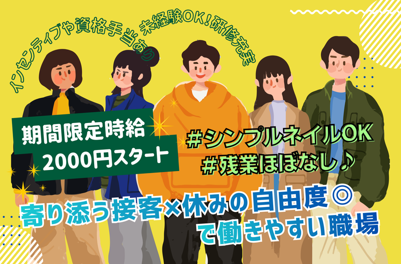 急募⭐就業開始手当最大10万円!時給2000円!楽しく接客◎
