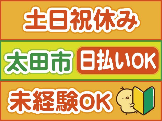 最寄駅 東武伊勢崎線 太田駅 車で9分 最寄駅備考 ・マイカー通勤もOK(駐車場無料)/交通費規定内支給
