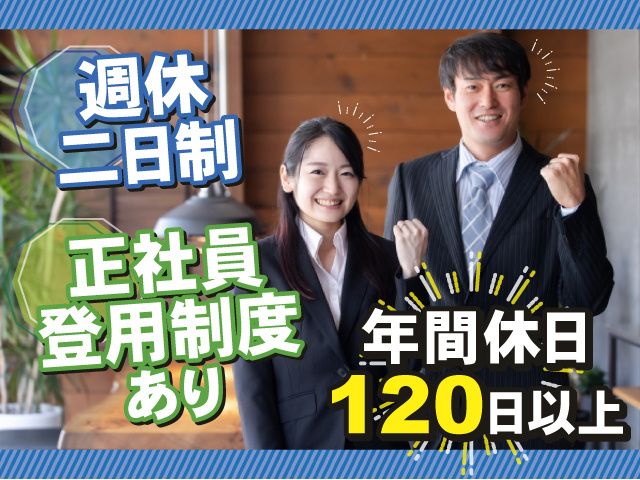 仕事内容 \ 残業なし×年間休日120日以上! / 少人数でアットホームな職場 20代~40代の男女スタッフ活躍中! 宅建の資格を活かせるお仕事◎ 【 仕事内容 】 不動産賃貸に関わるルームアドバイザー業務をお任せします! ・電話対応、PC入力業務 ・来店されたお客様への物件のご案内 ・内覧業務(社有車で現地へ向かいます) → 内覧は慣れるまでは社員が同行するので安心です◎ 宅建の資格を活かしたい方、接客が好きな方にぴったり! ゆくゆくは正社員を目指すことも可能です! ▼ この仕事のポイント! ・残業なしでメリハリ勤務 ・年間休日120日以上!プライベートも充実 ・昇給ありでやりがいもアップ! ・週払いOKで急な出費も安心◎ ・少人数で落ち着いた職場 ・正社員登用実績あり!長期的に活躍したい方にもオススメ 【 こんな方におすすめ! 】 ・宅建の資格を活かしたい ・人と話すのが好き!接客がしたい ・不動産業界に興味がある ・残業がない職場で働きたい ・正社員を目指したい ・間取りや物件を見るのが好き! < 面接前に、事前職場見学が可能!> 担当者と一緒に職場をチェックできます。 雰囲気や仕事内容を確認して、「違うかも…」と思った場合も遠慮なく言ってください。 その場合は、改めて合うお仕事をご紹介します。 「やってみたいかも」と思ったらぜひご応募ください! 面接日や入社日のご相談も大歓迎! あなたの新しいスタートを応援します!