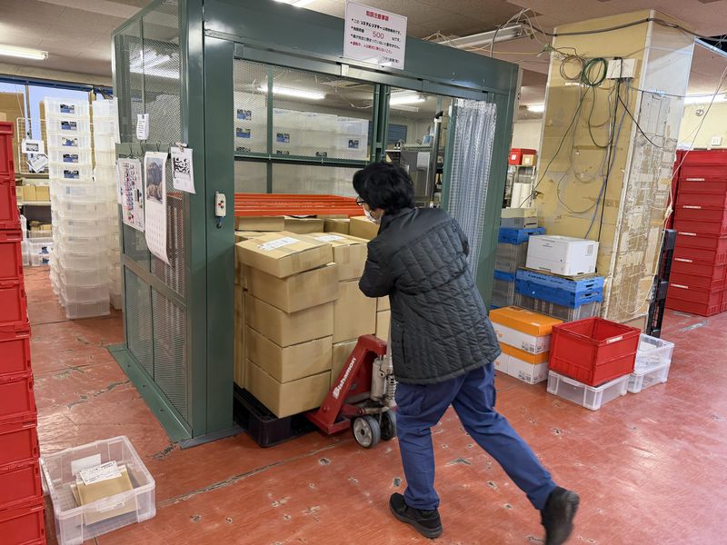 軽作業。力仕事はほぼなく荷物を丁寧に送り出すお仕事です。