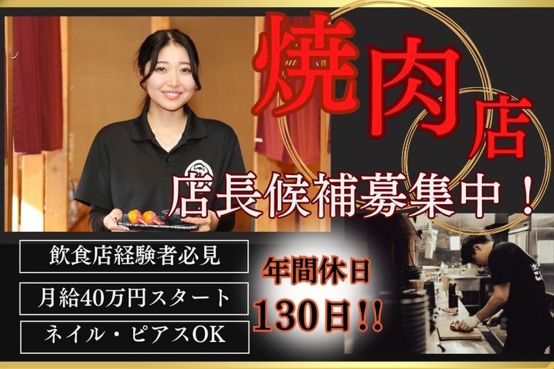 【仕事内容】 ⭐SNSで注目の焼肉店⭐ 正社員・店長候補を募集中!! \“辞めたくない職場”として話題の【焼肉ホルモンこたろう】/ 系列店では、一度働き始めたら辞めたくなくなるほど居心地が良いと好評! 経験者として、その雰囲気づくりやチームの中心メンバーとして活躍してください✨ 【ココで働くおすすめポイント】 ■月10日休みでワークライフバランス充実 ■系列店は平均年齢27歳で活気のある職場 ■風通しが良く、チームワーク抜群 ⏩️具体的な業務内容 ・店舗全体の運営管理(売上管理、在庫管理、シフト作成など) ・スタッフの指導・育成 ・店舗ブランディングやサービス品質向上のための戦略立案・実行 ・業務改善の施策企画、トラブルシューティング など 店舗運営のあらゆる側面を統括していただきます! ================ ✅温かい人間関係の職場です ================ 「人間関係に疲れた…」「もう悩みたくない」 そんなあなたにこそ、新しいお店でのスタートをおすすめします! 平均年齢も若く、和気あいあいとした職場になる予定です✨ ここで、心機一転、新しい一歩を踏み出してみませんか? =========== ✅高収入が目指せる! =========== 月給40万円スタート、最高月給60万円の高収入で安定して稼げます! 丁寧な研修制度が整っており、安心してスキルアップ可能です。 お店の運営に深く関われるポジションで、自分のアイデアや工夫を活かして店舗を盛り上げられます! =============== ✅SNSでバズり中の人気焼肉店 =============== 卵黄の醤油漬けとイチボが絶妙にマッチした「ランイチ」は、予約必須の大人気メニュー✨ 黒毛和牛をリーズナブルに楽しめる焼肉店「こたろう」は、SNSでも話題沸騰中! そんな人気店を一緒つくり上げてくれるメンバーを大歓迎しています! 【求人ID-SEI】
