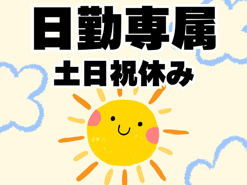勤務時間・曜日: 〈日勤×土日祝休みで働きやすい♪〉 8:30~17:15(実働8時間) 休憩12:15~13:00(45分) 残業:月5時間程度 GW、夏季、年末年始に長期連休あり!