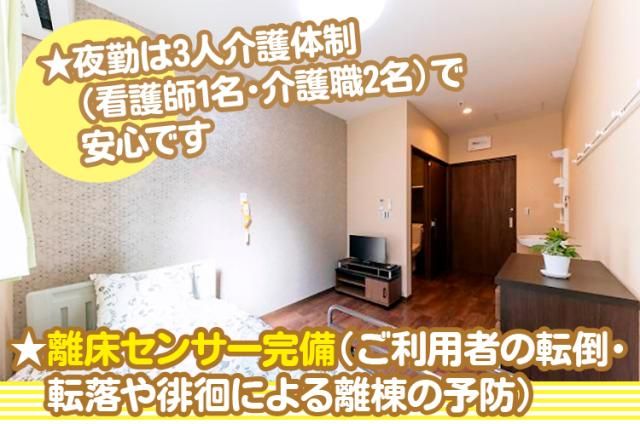 【夜勤専従介護職員】◇週1日勤務より相談OK☆WワークOK◇夜勤3人体制(介護職2名・看護師1名)