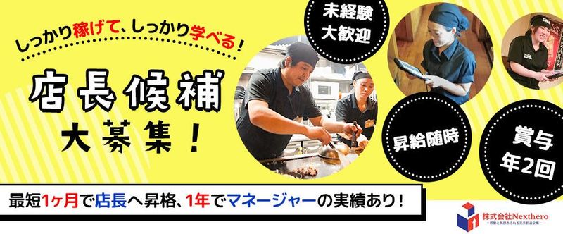 月給350,000円~500,000円 給与詳細 ※基本給・固定残業代・一律手当の総額 基本給:月給 21万4773円 〜 36万4773円 固定残業代:あり 1ヶ月あたり8万5227円(固定残業時間:1ヶ月あたり40時間) 固定残業時間を超えた勤務時間については別途残業代を支給する 【一律手当】 全員に一律で支払われる通勤・皆勤・家族手当金額:あり 1ヶ月あたり1万円 全員に一律で支払われるその他手当金額:あり 1ヶ月あたり4万円 ◆各種手当について ・家族手当:10,000円(配偶者ありの場合) (配偶者:10,000円、子ども手当5000円/当社規定) ・調理師手当:10,000円(資格者のみ) ・住宅手当:20,000円(総合職・家賃半額会社負担) ・成果手当:10,000円(2024年8月実績平均) ※手当については当社規定あり ◆その他手当 ・交通費一部支給(マイカー通勤可※ガソリン代支給/当社規程) ・大入手当 ◆昇給あり/年1回 ◆賞与あり/年2回 ★最短、入社半年で昇格が可能です! 【給与例】 給与例 ▼月収例 <部長(経験あり・入社3年)> →月給50万円+月次成果給7万円 <店長(未経験・入社2年目)> →月給32万円+月次成果給3万円 <副店長候補(未経験・入社1年)> →月給28万円+月次成果給1万円 ※月次インセンティブ(前年比・FL管理・大入手当) ▼年収例 ・部長/年収500万円(経験あり・入社3年) ・店長/年収410万円(未経験・入社2年目) ・店長候補/年収350万円(経験あり・入社1年) ・店長候補/年収300万円(未経験・入社1年) 大手にはないスピード感のある企業  ̄ ̄ ̄ ̄ ̄ ̄ ̄ ̄ ̄ ̄ ̄ ̄ ̄ ̄ ̄ ̄ ̄ ✅1年以内で店長候補へ ✅2年以内でマネージャーへ ✅5年後には役員候補へ 「人生はオーダーメイド」が当社の合言葉です。 入社後の具体的なキャリアプランが存在しない企業は 多数ありますが当社はより具体的に1人1人の夢や 目標を尊重してそれぞれのスタイルにあった 人生プランを全面にサポート致します。 店長、エリアマネージャー、商品開発、取締役、 「独立したい」「社長になりたい」など様々なプランをサポートします。
