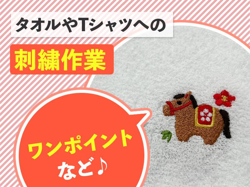 仕事内容: ●タオルやTシャツへの刺繍作業の補助 (機械を使った刺繍作業) ●商品の検品 ●梱包・箱入れなど出荷作業 ▼具体的には… ①機械に生地をセット ↓ ②機械のボタンを押す ↓ ③刺繍された生地を機械から外す ↓ ④糸処理、検品(汚れなどがないか) ↓ ⑤畳む、梱包 刺繍作業は機械が行いますので 生地をセットしたらボタンを押すだけ◎ ミシンや裁縫が苦手な方も 安心して始められます♪ まずは簡単な作業から、 一つずつ覚えていきましょう◎