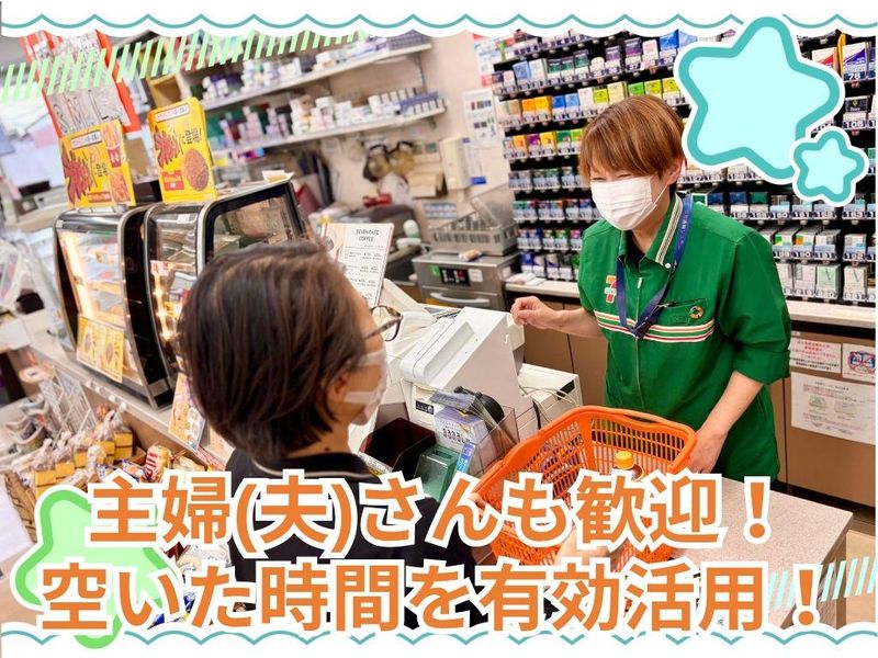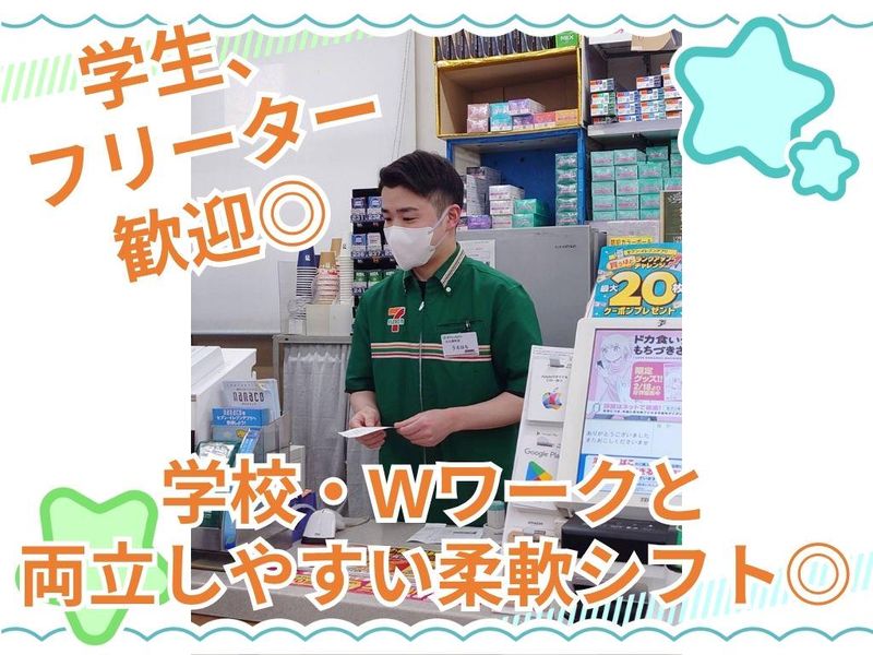 求めている人材 ◎バイトデビューも大歓迎! ◎土日祝、GW、お盆、年末年始(12/24-1/3) 出勤できる方、大歓迎! ✅未経験者歓迎!経験者歓迎! ✅ブランクOK! ✅副業・WワークOK! ✅主婦・主夫歓迎!フリーター歓迎! ✅学生歓迎!高校生OK! ✅学歴不問!年齢不問! 経験不問!資格不問!男女不問! ✅10代活躍中、20代活躍中、 30代活躍中、40代活躍中、50代活躍中 ✅ミドル活躍中! \こんな方を歓迎します!/ ⭐ 接客が好き!人と話すのが好きな方 ⭐ 未経験でも新しいことに挑戦したい方 ⭐ セブンイレブンで働くことが好きな方 ⭐ チームワークを大切にできる方 ⭐ コツコツ作業が得意な方(品出し・陳列など) ⭐ 空いた時間を有効活用したい方(Wワーク・扶養内OK) ⭐ 早朝勤務でしっかり稼ぎたい方