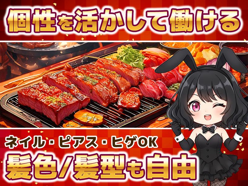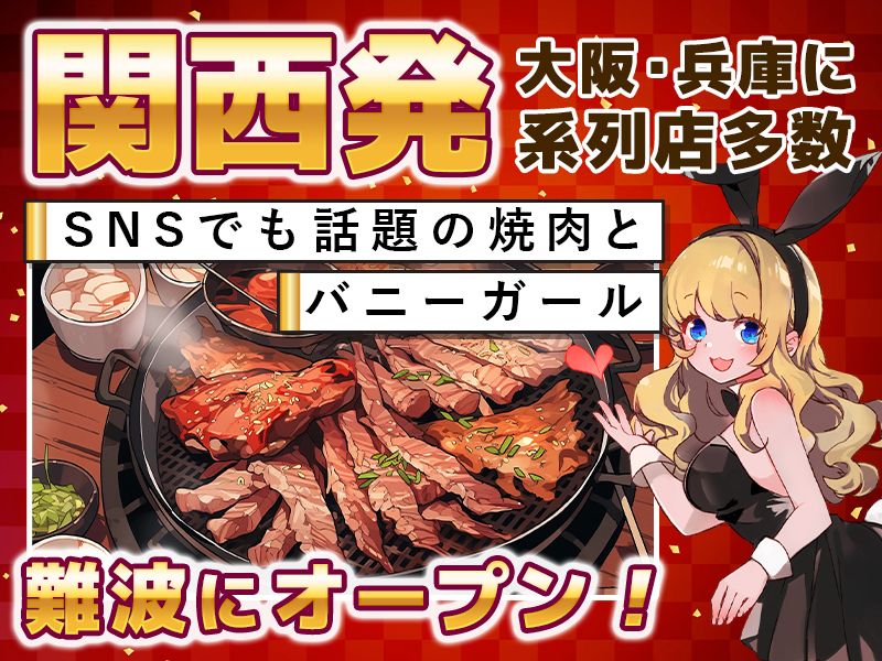 SNSやメディアで話題沸騰!【焼肉とバニーガール難波店】ホールスタッフ募集!研修制度を完備しているので未経験者でも活躍できる環境です!