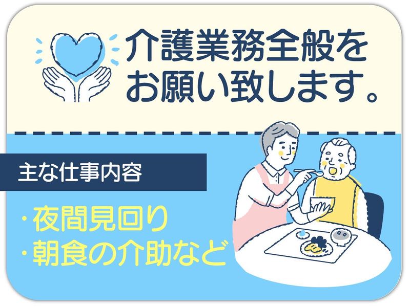仕事内容 <未経験・ブランクのある方も歓迎!✨> 落ち着いた環境で、夜間の介護業務をお任せします。 【業務内容】 ・入浴 ・排泄 ・食事介助 ・レクリエーション など 入社後は先輩スタッフが丁寧に教えるので安心◎ 未経験の方もブランクある方もすぐに馴染めます! ~当施設について~ ―――――――――― 当施設では、医療面のバックアップも充実しています。 ・地域医療機関による訪問診療 ・緊急時の対応体制あり ・提携薬局によるお薬管理サービスなど 万が一の時も安心して勤務できる環境です。 ⭐生活スタイルに合わせた働き方が可能 ――――――――――――――――――― 子育てや家事がひと段落して働きたい方や 資格を活かして働きたい方大歓迎! 夜勤専従のため、ご自身の生活リズムに合わせて働けます♪ ⭐事前に職場見学もOK ――――――――――― 「実際の雰囲気を見てから決めたい」 そんな方のために、事前の職場見学を行っています。 ☑施設の雰囲気 ☑働くスタッフの様子 ☑実際の業務内容など 気になることはその場でご確認いただけます。 ぜひ見学にお越しください★ ⏩内定後、すぐに勤務スタート可能! 勤務条件や働き方の相談OK 少しでも気になった方は、 まずはお気軽にお問い合わせください。