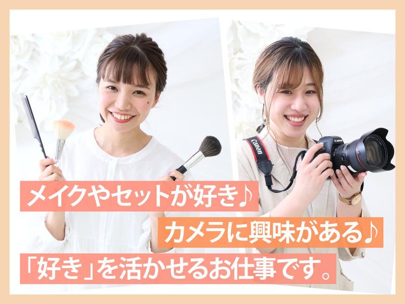 求めている人材 【必須条件】 土日勤務出来る方 【歓迎条件】 未経験大歓迎! 扶養内勤務OK ✅ 子どもが好き!楽しくお仕事したい♪ ✅ かわいい衣装や写真が好き! ✅ 人と接するのが好き! ✅ 未経験から新しいことにチャレンジしたい! 教育・保育関係や美容関連の資格を持つ 先輩も多数活躍中♪ 将来に役立つ技術が身につきます! ※高卒以上
