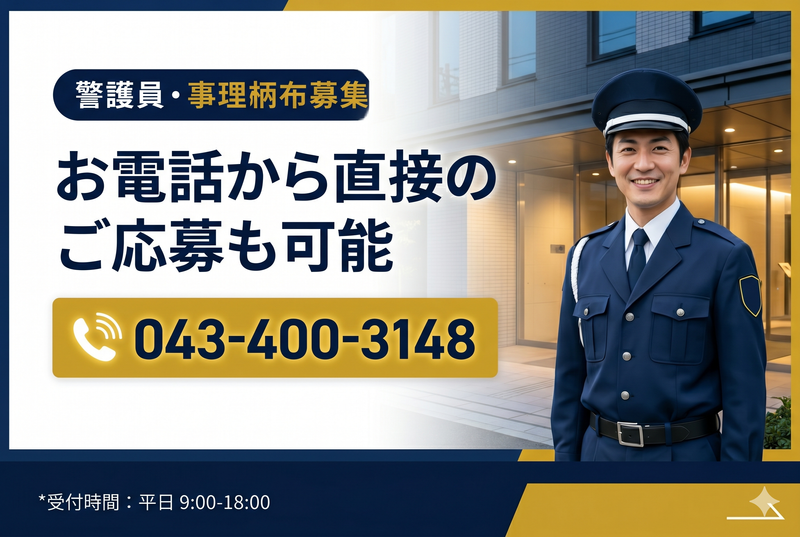 求めている人材 \\ 未経験歓迎! // < シニアの方も歓迎 > < 異業種からの転職者も多数活躍中> ※ 必須条件 ※ ・18歳以上の方(警備業法による) ・現場へ通勤可能な方(直行直帰OK) ・日勤での勤務が可能な方 ・経験不問、未経験者大歓迎 * 歓迎条件 * ・交通誘導警備業務2級をお持ちの方 ・警備業務の経験がある方 (施設警備・イベント警備など) ・週4日以上勤務できる方 ※いずれも必須ではありません ~ こんな方におすすめ ~ ・日勤で安定した収入を得たい方 ・ブランクがあるけどもう一度働きたい方 ・日払いなど柔軟な給与制度を希望される方 ・人と接することに抵抗がない方 ~ 50代・60代が中心に活躍中 ~ チーム制で、和やかな雰囲気の中 協力しながら業務にあたっています。 「初めてで不安…」という方でも 安心できる環境が整っており、 しっかりとフォローする体制も万全です。 ▼ こんな経験を活かせます ▼ アルバイト、パート、契約社員、 正社員などの雇用形態に関わらず 夜間施設警備員や施設警備夜勤、 大学警備、大学警備、常駐警備、 交通誘導警備員、交通警備、守衛、 イベント会場警備、病院警備、 工場警備、パトロール・巡回警備、 駐車場管理、パーキングスタッフ、 駐車場スタッフ、管理人など 警備員・警備スタッフの 経験がある方は大歓迎です! (※必須ではありません。) 年齢の条件と理由:あり(例外事由2号・18歳以上(警備業法のため))