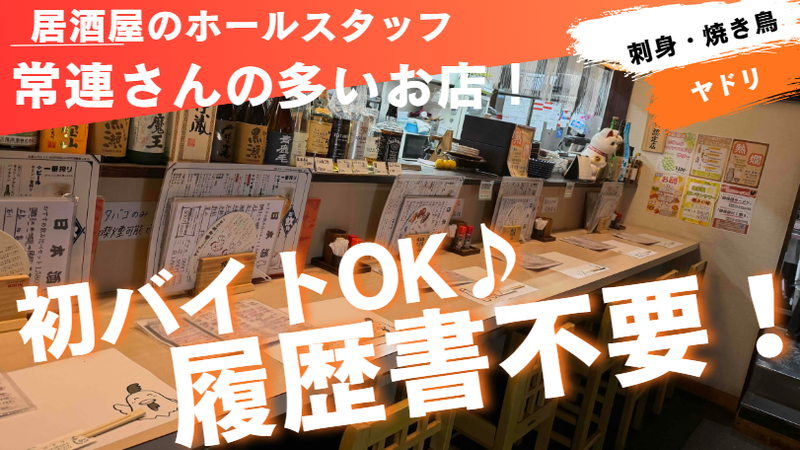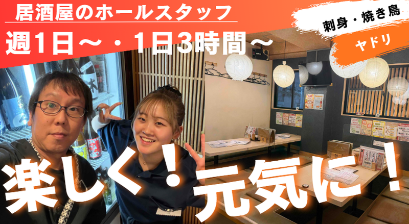 仕事内容 \ 学校も遊びも両立!楽しく働きたい人に◎ / ⚡週1日~、1日3時間~OK! ⚡シフト希望はLINEでポンっと送るだけ! ⚡髪色・ネイル自由で学生生活も楽しめる! ⚡履歴書不要で応募もラクラク! 大学生や若手のフリーターが多数活躍中! スタッフ同士で声を掛け合ったり、 ちょっとした雑談で盛り上がったり…♪ “楽しく働く”スタイルがこのお店の魅力! バイト自体が初めての方もすぐ馴染めますよ*。٩(ˊᗜˋ*)و*。 <お任せするお仕事内容> ✅お客様のご案内 ✅オーダーテイク ✅ドリンク・料理の配膳 ✅テーブルの片付け ✅お客様のお見送り など バイトデビューや 飲食店でのバイト経験がない方も 先輩がサポートするから大丈夫! 丁寧な研修も用意しているので 最初は「明るい挨拶」ができればOK! あとはお店の雰囲気に慣れながら、 少しずつ仕事を覚えてきましょう|ω·)و ̑̑༉ \ 働きやすさに自信あり / 店内は“和”っぽい雰囲気だけど、 スタッフ同士でSNSの写真を撮ったり、 仕事中も明るい声が飛び交ったり…♪ 落ち着き×活気のバランスがちょうどいいお店です。 優しい常連さんも多いから、 初バイトの子でもすぐ馴染めちゃいます✨ また、シフトはLINEでサクッと提出OK! 学校・遊び・サークルとの両立もしやすく、 自分のペースで無理なく働けるのも魅力です◎ \ 実際に働くスタッフに聞いてみた! / ■大学3年・Aさん(バイト歴6ヶ月) ―― このお店を選んだ理由は? 友だちがここで働いていて、 “人が優しいからほんと働きやすいよ!”って すすめてくれたのがきっかけです。 実際に来てみたら、スタッフ同士が明るくて、 新人にもすぐ声をかけてくれる雰囲気があって 初日から緊張がほぐれました(笑) ―― 働いてみてどう? シフト希望をLINEで送ってOKなのが本当に助かる! テストの時期はセーブして、長期休みは多めに入る… みたいな調整もしやすいです! あと、常連さんが多くて優しい人ばかりだから、 “今日も頑張ってね”って声をかけてもらえるのが 密かに嬉しいです♪ ―― これから応募する人へ一言! 初バイトでも本当に大丈夫! 分からなくて立ち止まってても、 誰かが『ここはこうだよ〜』って声かけてくれます。 私たちと一緒に楽しく働きましょう~!