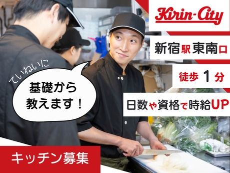 仕事内容 「自炊、行き詰まってない?」 基礎から教えるから、料理初心者でも大丈夫◎ 自炊に役立つスキルをGET☆ レパートリーも増やせちゃいます おすすめポイントを紹介! ↓ ↓ ↓ 【スキルUP】料理、ちょっと語れるようになります お任せするのは、"キリンシティの味"を支えるカッコいい仕事! アツアツの名物「職人のソーセージ」を最高の焼き加減で仕上げたり、 "ご馳走ビール"に合う絶品料理をマスターしたり… 「包丁の握り方」から教える丁寧な研修があるから、料理経験ゼロでも全く問題ナシ! 気づけば、友達に自慢できる一品が作れるようになっているかも!? □■具体的な業務内容■□ 下ごしらえ・調理・盛付・食材在庫チェック・キッチン清掃など、カンタンな業務がメインです。 いま大活躍の先輩たちも、ほとんど未経験からのスタート。初バイトの方もお気軽にご応募ください◎ 【最高のチーム感】キッチンは、もはやスポーツ キッチンはチームプレイ! 同世代の仲間と声を掛け合い、お店のピークを乗り切った後の一体感は、マジで青春です。 あなたが作った熱々の料理と、ホールが注いだ最高のビールでお客様が笑顔になる。 その瞬間が、私たちの最高のやりがいです! シフトも履修やサークル、テスト期間に合わせて超柔軟に対応します! 【最強コスパ】食費、マジで浮きます キリンシティのアルバイトスタッフだけの超特典! 一部にはなりますが、フードメニューが約半額で食べられる「まかない補助」があります! 定番のピザ、パスタ、カレーなど、ガッツリ系メニューも!? 一人暮らしの胃袋と財布を直撃する、最強の福利厚生です! 「この料理、最高に美味しいんですよ!」って、自信持ってお客様におすすめするためにも、まずは自分で味を確かめてみてね! 【個性が光る】髪色、ほんとに自由です 「自由って言っても、ちょっと明るめの茶髪だけでしょ?」 そんなことはありません! キリンシティは、あなたの「個性」と「おしゃれ」を応援します! 大学生活やプライベートで楽しんでいる明るい髪色も、派手髪だって、もちろんOK。 自分らしい「カラー」を大切にして、料理スキルをどんどん磨いていきましょう!