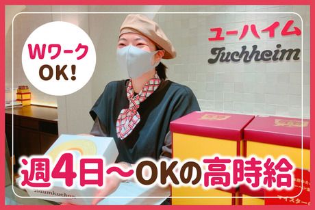 仕事内容 週4・5で安定して働きたいが叶う!子育て中の方多数活躍中! <お仕事内容> ・商品のご案内、陳列 ・箱詰め、ラッピング ・レジ など 接客や販売のお仕事以外にも、ディスプレイを考えたり… 商品のラインナップを変えたり… お客様に喜んでもらえる売場づくりにもチャレンジできます! こんな方にオススメのお仕事です! 「洋菓子が好き」 「人と話すことが好き」 「未経験だけど興味がある」 「経験を活かしたい」 少しでもご興味がある方はお気軽にご応募くださいね 一緒にお店作りをして下さる方であれば皆さん大歓迎です! ユーハイムについて <100年以上愛されている洋菓子店> 普段使いからホームパーティーなどの手土産にも映える洋菓子。 小さなお子様からご年配のお客様まで、 幅広い方々に自信を持ってオススメできる洋菓子には 余計な添加物は使っていません。 昔ながらの製法を守りながら、 素朴な味わいに加え美味しさを追求し続けています。 職場見学もOK! 「お店の雰囲気を見てから決めたい」という方もOK! 面接後にお店について、ショーケースの外から お店の雰囲気や接客の様子などを見学いただけます。 *お客様の来店状況などにより、 当日お断りする場合がございますのでご了承ください。