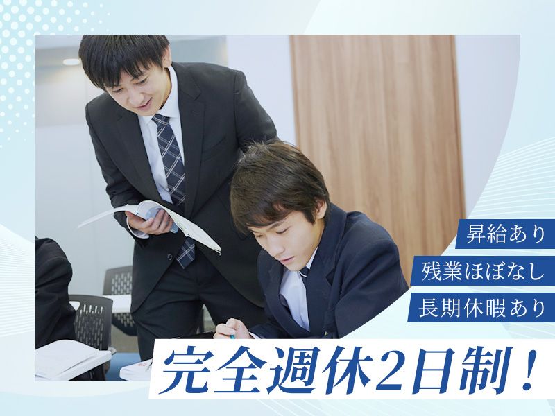 仕事内容 〇●┈┈┈┈┈┈┈┈┈┈┈┈┈ 残業ほぼなし!  ̄ ̄ ̄ ̄ ̄ ̄ ̄ ̄ 完全週休2日制×長期休暇ありで ワークライフバランス充実♪ ┈┈┈┈┈┈┈┈┈┈┈┈┈●〇 【求人のポイント】 ✅昇給あり! ✅賞与あり(年2回) ✅年功序列ではなくチャレンジ応援 【お仕事内容】 生徒の授業、進路指導の他に下記の 業務をお任せします! 〇保護者への連絡・対応 〇生徒募集に向けた広報や営業活動 〇説明会や体験教室などのイベント 〇入塾希望者の面談・対応 など 【ゆくゆくは•••】 〇講師(アルバイト)の採用や育成 〇カリキュラムの作成や管理など アイデアを活かすことが増えてきます。 教室長候補として生徒や講師(アルバイト)の サポート、教室運営全般をお任せします!