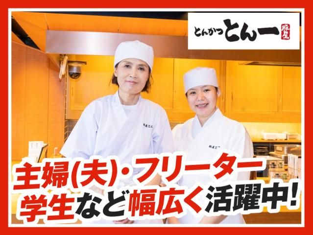 タイトル 【ディナー】夜の空き時間を有効活用♪学生さん活躍中!週1日~、1日3h~OK◎1食120円のまかない有!髪型・髪色自由であなたらしく働けます♪ 職種 調理・接客スタッフ(ディナータイム) 雇用形態 アルバイト・パート 仕事内容 ◆◇初バイト・未経験・ブランク有みなさん歓迎!◇◆ お仕事の各ステップごとに丁寧なトレーニングあり! 1つ1つできることが増えていく達成感があります。 ◆◇丸亀製麺と同じトリドールグループです◇◆ <プロ顔負けのサクッとジューシーなとんかつが作れる!> ●注文受付 かつ丼・定食などメニューやサイズのご注文を伺います。 ピークタイムも焦らず丁寧に対応するのがポイント◎ ●かつ丼の調理 パン粉をつけたり、とんかつを揚げたりします。 衣の分量などは分かりやすいレシピ完備◎ ●定食・食材の準備 お茶わんや丼ぶりにご飯を盛り、お味噌汁の準備をします。 お肉のカットや野菜などの準備も大切な仕事。 ●レジ業務 タッチパネル式だから操作も簡単♪ ●洗い場/店内清掃 お客さまが返却口にお持ちくださったお皿・おぼんを洗います。 食洗機を積極的に活用!手荒れを防いで効率よく作業◎ カウンター周りや調理場の清掃をこまめに行います。 忙しい時間帯もチームで声を掛け合い、助け合っています! ☆☆☆とんかつとん一の【3つの推しポイント】 1.高時給1210円&働きやすさピカイチ! ★「授業終わりにサクッと稼ぎたい」「土日だけ入りたい」など ライフスタイルに合わせて働けます!短時間の勤務もOK◎ ★週1日~、1日3h~OK!学業やサークル、遊びに合わせて組めます。 ★1週間毎の希望シフト制!テストや長期休暇の予定も立てやすい! ★給与は1分単位で計算!頑張った分はしっかり還元。 2. スタッフ想いの嬉しい待遇が満載! ★家族食堂制度スタート! 従業員のお子さまへ食事を無料提供!(※詳細待遇欄) ★1食120円で食べられるまかない有! ★交通費月5万円まで支給。 ★制服貸与。 ★スキルUPが収入UPに繋がる明確な昇給システム有。 3.幅広い年代が活躍!温かい協力体制! 10代・20代・30代・40代・50代・60代と幅広い年代のスタッフが活躍中! 学生さん、パート主婦(夫)さん、フリーターさん、中高年の方まで、 様々な仲間が協力し合い、チームワークを重視して、学び合える環境が魅力です。 <働くスタッフの声> ・元気な挨拶をほめられた ・忙しい時間帯に皆で連携してスピーディーに提供できた ・「おいしい」と喜ばれているお客さまの笑顔が嬉しかった ・食材の扱いや揚げ物が上手になった