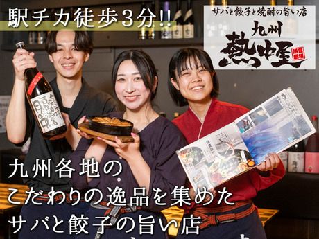仕事内容 【店舗スタッフのお仕事】 ・席へのご案内 ・注文取り ・料理運び ・料理の盛付 ・仕込み ・調理補助 など。 まずは明るい挨拶ができればOK! 他のスタッフと協力しながら、 お客様にとって居心地の良い空間を 一緒に作っていきましょう。 【未経験でも安心のワケとは?】 先輩達の多くが未経験スタート! 初めてで不安...な気持ちがよ~くわかります。 だから、 挨拶の基本~メニューまで 優しく丁寧に指導するのはもちろん、 お仕事中も先輩スタッフが近くにいて、 困った時はすぐフォローします! 【九州熱中屋】 「もつ鍋」「鉄鍋餃子」「薩摩揚げ」など 皆に愛される九州郷土料理をご用意。 九州各地の美味しい郷土料理を集めた 活気ある大衆酒場です。