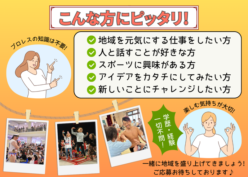 未経験◎プロレスの知識は不要✅ワクワクを仕事に✨月給30万〜