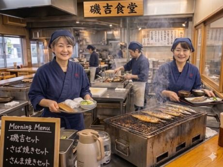 3月上旬オープン!ランチタイムは焼魚メインの「湊や磯吉食堂」になります。家事の合間に、ちょっとだけ働きませんか?てんぐ大ホールのランチスタッフ募集♪10:00~14:00の短時間OK/週2日~OK/扶養内歓迎お子さんの急なお休みもみんなでカバーします◎未経験・ブランクある方も安心スタート!食事補助あり・交通費支給・週払い制度あり・扶養内〇