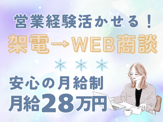資格・経験 ★営業経験者さん募集★ ・法人向けの営業経験(例:新規営業/アポイント獲得など) ・新しい知識を吸収する意欲がある方 ・お客さまの会話の方向性をつかみ、会話をつなげられる方 ■歓迎■ ・ITやシステム関連のご経験 ★こんな方にオススメ★ ・安定した月給制で働きたい ・コツコツ×会話の仕事が好き ・商談スキルを磨きたい ・幅広い年代がいる職場で働きたい