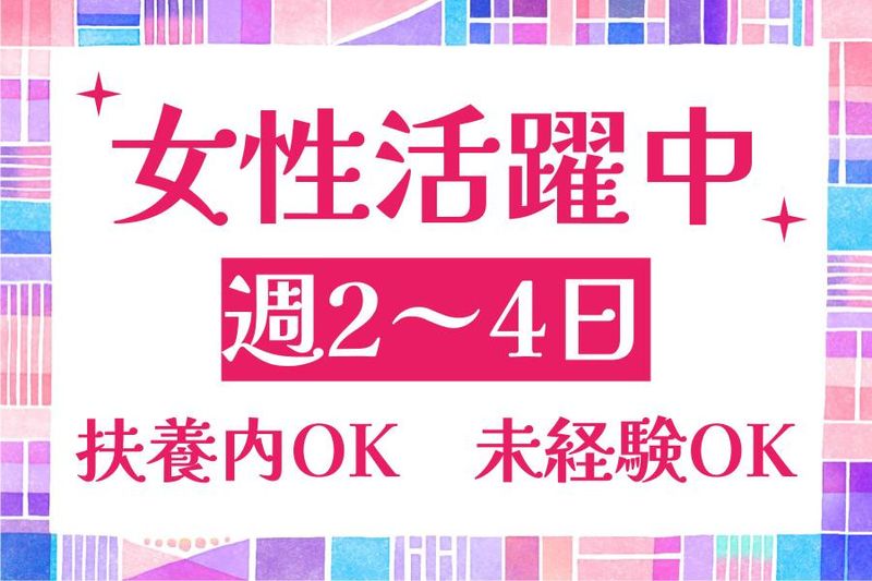 【アピールポイント】 ⭐扶養内OK ⭐週2~4日勤務 ⭐マイカー通勤OK ⭐シニア活躍中 ⭐冷暖房完備