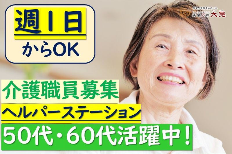 【仕事内容】 朝7時開始3時間からOK!週1日からOK!たくさん働きたいのご希望も大歓迎です!WワークもOK! 介護職員募集!入居施設未経験の方も、ブランクある方も安心してご応募ください!研修制度・教育制度が整っています。 【PRポイント】 ・心からの感謝の言葉を貰えるお仕事です ・一人ひとりと向き合う寄り添った介護が可能 ・スタッフ間のチームワークと雰囲気の良さ! ・チームで支え合い、成長できる環境! ・夜勤も手当充実!働き方に合わせた柔軟な勤務制度! ・資格取得支援制度(費用補助・合格祝金)あり! ■具体的な仕事内容 併設ナーシングホームの入居者様への訪問介護業務全般をお願いします。 ・食事や入浴、排泄の介助 ・バイタルチェック ・レクリエーション など ●ナーシングホーム笑樂乃郷 大晃(しょうらくのさと だいこう) 大晃グループでは、介護・看護・事務すべての職種で有給休暇が「半日単位」から取得可能です。 お子さまの学校行事や急な用事にも合わせて柔軟にシフトを調整できるので、子育て中の方も安心して働けます。 また、私たちの合言葉は「助け合い・支え合い」。 スタッフ同士が自然とフォローし合える風土があり、実際に多くの子育て中のママがイキイキと活躍しています。 ●実務未経験の方も歓迎です 先輩スタッフが、一から丁寧にサポートします。ブランクのある方も、もちろん安心して働けます。 ●お気軽にお問い合わせください。 ぜひご応募くださいね。 いきなりの面接は不安な方には施設見学も大歓迎です。 働き方の相談や、仕事内容のご質問などのお問合せもお気軽にご連絡ください。 入職時期が2、3ヶ月後の方も遠慮なく、施設見学承っています。先ずはメールでお問い合わせ下さい。