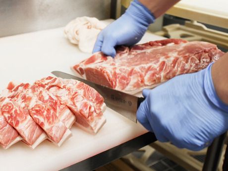 食品スーパーでの精肉加工