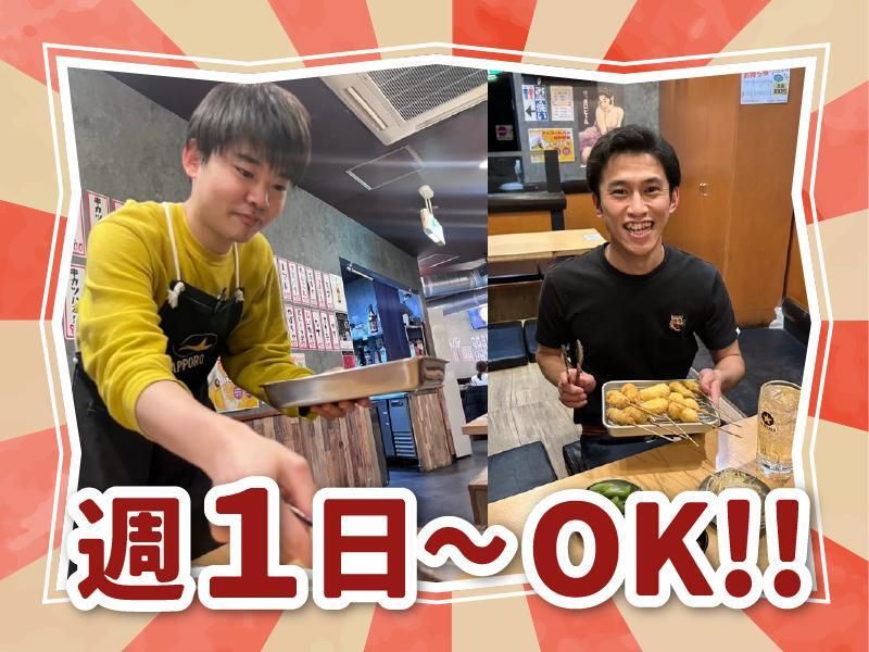 仕事内容 【雇用形態】アルバイト・パート ==求人のポイント== ✅週1日~Wワークも歓迎 ✅「運ぶ」「片付ける」だけ の超シンプルワーク♪ ✅スタッフに好評のまかないあり♪ ✅学生さん大歓迎♪高校生もOK! ✅「初めてのアルバイト」大歓迎♪ - <仕事内容詳細> 串かつ酒場のホール兼キッチンをお任せ! \\ 具体的には //  ̄ ̄ ̄ ̄ ̄V ̄ ̄ ̄ ̄ ̄ ̄ ●受付・案内 ●お料理の提供 ●片付け ●キッチンの簡単なお手伝い ●店内カラオケルームの清掃など♪ - ╭━━━━━━━━━━━━━━╮ ⧉ 超シンプルワークの理由 ⧉ ╰━v━━━━━━━━━━━━╯ ●タッチパネルオーダー採用! └オーダー受け・ハンディ操作なし! ●ドリンクはセルフサービス◎ └ドリンク作成なし! ●自動精算機あり! └セルフ会計のためレジ対応なし♪ 覚えることは多くないので、接客や飲食店 アルバイト・パートデビューにピッタリ♪ 短期でもすぐに活躍できますよ♪ - <事業内容> 串かつ酒場 - ==求人のポイント== 時間・曜日等の融通が利くので、 予定に合わせて働ける☆彡 週1日~OK!(土日勤務できる方歓迎) 短時間勤務・フルタイムなど自由自在♪ シフトはお気軽にご相談くださいね! -