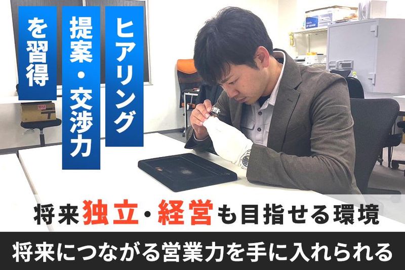 仕事内容 ━━━━━━✨ ━━━━ ✨━━━━━━ 新規オープニング募集! 不用品の出張買取を行う 買取スタッフをオープニング募集! ━━━━━━✨ ━━━━ ✨━━━━━━ ⏩オフィスに縛られず、 全国各地を巡りながら 裁量権を持って高収入を目指せる、 反響型の出張買取のスタッフの募集! ⏩テレアポや飛び込みは一切なし。 お客様のご自宅へ訪問し、 ブランド品・宝石・時計・家電などの 査定・買取を行う仕事です。 「営業」といっても モノを売る仕事ではありません。 不要になったものをお引き取りする “買う営業”です! 《仕事内容》 *自社コールセンターが取得した 訪問予定(アポ先)の確認 *ご予約のある一般ご家庭へ訪問(全国各地) *家電・骨董品・ジュエリー・貴金属などの査定 *買取のご提案・お取引対応 訪問件数は1日あたり6~10件程度。 事前にお約束のある お客様宅への訪問のみなので、 無理な買取営業は一切ありません。 未経験の方でも 査定金額は品目ごとに一定の基準があり、 専門知識がなくても問題ありません!◎ 「他にも不要なものはございますか?」 とお声がけし、なければ 「ありがとうございました!」で完了。 見積だけのお客様も多く、 無理な買取や強引な提案は一切行いません。 \\✨このお仕事の魅力✨// ✅将来につながる営業スキルが身につく  ̄ ̄ ̄ ̄ ̄ ̄ ̄ ̄ ̄ ̄ ̄ ̄ ̄ ̄ ̄ ̄ ̄ ̄ ̄ この仕事で得られるのは 「モノの価値を見抜く力」と 「ヒアリング力・提案力」です ブランド・宝石・市場相場など どこでも通用する“目利き”のスキルや 異業種でも通用する“営業力”が身に付きます ✅買取査定の依頼があるご家庭に伺うだけ!  ̄ ̄ ̄ ̄ ̄ ̄ ̄ ̄ ̄ ̄ ̄ ̄ ̄ ̄ ̄ ̄ ̄ ̄ ̄ ̄ アポイントはすべて 弊社コールセンターで取得済み! 基本的にお約束しているご家庭に伺うだけ! お客様との信頼関係づくりに 専念できる環境です。 ✅全国を回る自由な働き方  ̄ ̄ ̄ ̄ ̄ ̄ ̄ ̄ ̄ ̄ ̄ ̄ ̄ 「今週は仙台、来週は福岡」など 毎週違う土地へ、 出張中でも時間の使い方は自由で 観光や早上がりもOKです! ✅自由な働き方  ̄ ̄ ̄ ̄ ̄ ̄ ̄ ̄ お仕事は直行直帰OK! 出張中の時間の使い方も自由で早上がりもOK♪ オフィスに縛られない働き方が叶います。