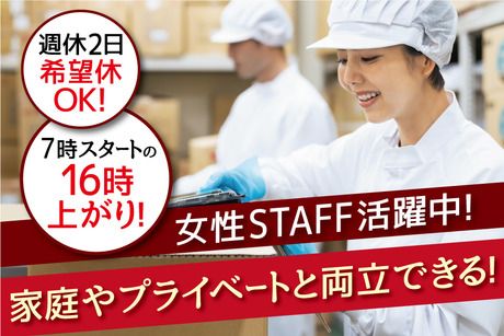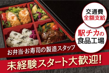 仕事内容 【おすすめポイント】 ●16時退勤で、お迎えも夕飯も余裕で間に合う! ●混雑知らず!平日休みで用事もサクッと片付く♪ ●予定に合わせてお休み調整◎週2日まで希望休OK! ●駅チカ好条件!姫路駅から徒歩圏内&交通費全額支給 【食品工場でお弁当・お寿司の製造STAFF】 ちょっと特別なお弁当づくりのお手伝い♪ お任せするお仕事は・・・ ■おかずをお弁当にキレイに盛り付け ■見た目や内容をチェックして仕上げ♪ ■ちらし寿司や巻き寿司をつくる作業もあります! 「食品工場は初めてで不安…」という方も大丈夫◎ 1から丁寧にお教えするので、安心してスタートできます! 【勤務先のご紹介】 20代、30代、40代、50代の女性スタッフ活躍中! 主婦さんやママさんも在籍! 平日がお休みの日もあるので、 土日だと行きにくい場所・混雑している場所や、 役所の手続きなどもスムーズに済ませられます♪ 大型連休中もお仕事がある工場なので、 「お休みが多くてお給料が減る…」なんて心配もナシ! 毎月安定した収入があるから、家計も安心です◎ 【様々な方面からの通勤あり!】 姫路市周辺だけでなく、たつの市や加古川市、 高砂市、太子町、明石市、福崎町などから通う方もいます!