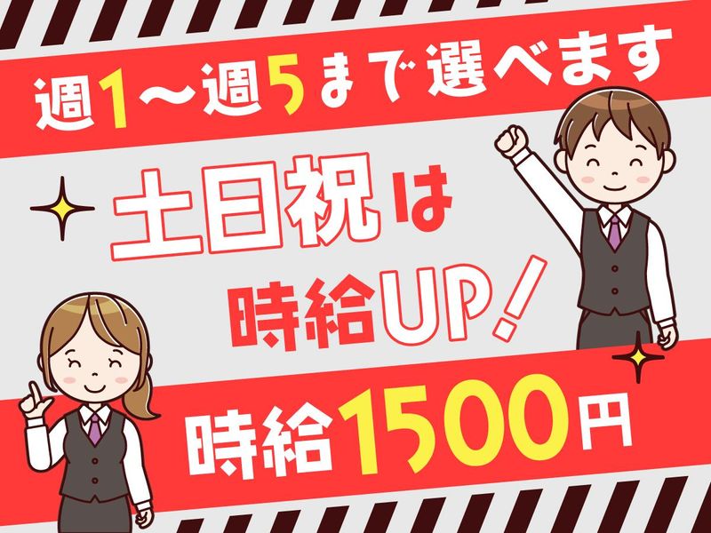 週3勤務OK!♪土日祝の時給UPで最大時給1875円以上!