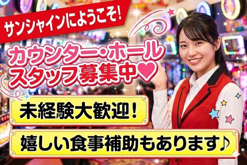仕事内容 =====仕事内容===== ✅引継ぎ事項の確認 ✅店内のご案内 ✅箱の上げ下ろし・交換 ✅開店業務(早番)・閉店業務(遅番) ✅片付け ✅遊技台の拭き作業 ✅簡単な店内の清掃 ✅カウンターでの景品交換 ============== 女性活躍中のお店です!☆ 募集時間帯は2つ!昼間の時間帯(早番)と 夕方からの時間帯(遅番)なので Wワークや掛け持ちバイトも大歓迎! ★☆★☆★☆★☆★☆★☆★☆★☆★☆★☆ 「アルバイトはもうしているけれど もう一つ新しくはじめたい方」 「昼間や夕方の空いている時間を 有効に活用したい方」 そんな希望をお持ちのフリーターさんや 学生、主婦(夫)の方にピッタリ! 未経験でも安心してスタート出来る お仕事です! ★☆★☆★☆★☆★☆★☆★☆★☆★☆★☆ 【接客未経験の方も大丈夫♪】 パチンコの知識や経験は一切問いません。 アルバイト中に困ったことがあれば スグに先輩に相談できるお店です♪ ◎希望シフトはしっかり考慮! 早番希望でも遅番希望でも対応します。 夕方からのプライベートを大事にしたい方は 「早番シフト」がおススメです☆ しっかり稼ぎたい方に向けた「遅番シフト」 遅番シフトはゆっくり 16時30分からスタート♪ 土日・祝日は時給も1500円以上にアップ! 更に22時以降は平日1750円以上、 土日・祝日は時給1850円以上となります。 限られた日数と時間で効率よく 稼ぎたい方におススメです☆ 生活リズムやプライベートの予定と 両立しながら安定の高収入を GETしちゃいましょう! 丁寧な研修を10日間実施しますので、 未経験の方も安心です。 接客マナーもしっかりお教えします。 基本の接客マニュアルあり! 接客の経験がある方大歓迎! 業界未経験の方や専門知識の無い方 でも安心してスタートできるように 先輩スタッフがしっかりサポートします。 同年代のスタッフが多く 馴染みやすい環境です。 高時給&充実の福利厚生で 働きやすさ抜群です☆ 可愛い制服も大好評! 食事も1食200円で食べられます☆ ✨スタッフの8割が未経験スタート!✨ 私生活と両立するフリーターや 主婦さん等幅広く活躍中です! 空いた時間で効率良く稼ぎたい方や がっつり稼ぎたい方もどちらも歓迎★