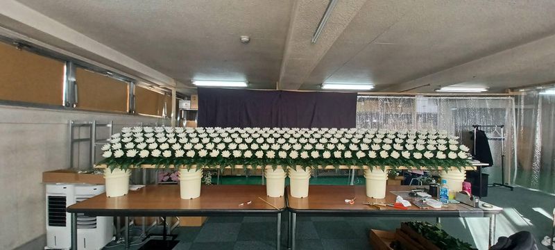 セレモニーで使用する造花の製作スタッフ