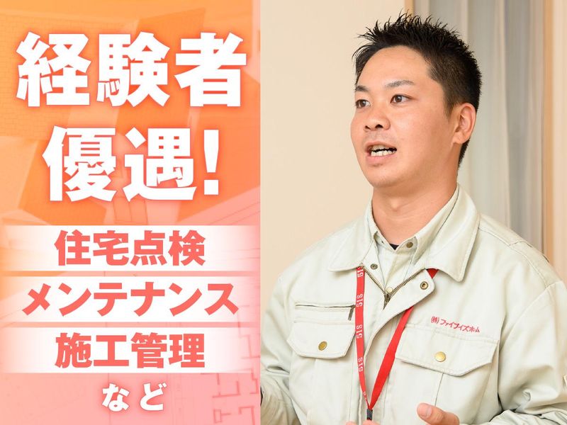 仕事内容 ✅年休120日×完休2日(水+土or日休) ✅繁忙期以外は残業月平均20h以下☆ ✅創業以来46年連続黒字経営の安定企業 ✅賞与年2回+手厚い待遇・福利厚生 ✅家族・役職・資格手当、退職金制度有 ✅くるみん認定の子育てサポート企業☆ ✅車通勤OK&ガソリン代も全額支給! ✅学歴不問・未経験OK・第二新卒歓迎 ✅ゼロからのチャレンジも大歓迎です! ✧₊――˚✧₊――˚✧₊――˚✧₊――✧₊――₊✧ ✨✨秋からの新メンバーを大募集✨✨ 地域シェアNo.1ハウスメーカーでの 「点検スタッフ」募集☆ 46年連続黒字経営の地域密着の 住宅メーカーとして成長を続ける当社。 埼玉県が認定する「埼玉県 多様な 働き方実践企業認定制度」では、 最も評価の高い「プラチナ認定」を獲得。 くるみんマーク取得企業としても子育て 世代の働きやすさを大切にしています。 末永く愛され続ける住まいへお客様の 快適な暮らしを支えるパートナーとして 活躍してみませんか? 今回はお客様の安心な暮らしを サポートする「住まいのかかりつけ医」 のようなお仕事です。 これまでの経験よりも、 あなたの人柄や思いを重視します。 知識・経験が全くないの方も歓迎です☆ 未経験スタートの先輩も多数活躍中☆ 今回は複数名採用を予定しているので、 仲間と一緒にスタートできます♪ ✧⁎✧⁎✧⁎✧✧⁎✧⁎✧⁎✧✧⁎✧⁎✧⁎✧✧⁎✧⁎✧⁎✧ 《 仕事内容 》 当社が手がけた戸建住宅を訪問し、 定期点検や報告などを行う 「アフターフォロー業務」です。 【具体的には】 ■訪問&定期点検の実施 ∟1日1~2件:1件あたり2時間程度 点検方法:目視、又は写真撮影にて実施。 決まったチェック項目を1つ1つ 細かい部分もしっかりと確認を行います。 ■点検報告書の作成 ∟点検の結果をもとに報告書を作成します。 ■お客様への報告 ∟点検報告書を用いてお客様のお住まいの 状態を報告をお願い致します。 その際にご要望やお悩みがあれば しっかりお伺いして報告お願い致します。 ■お問い合わせ対応 ∟「ドアの取手が緩み」「排水管のつまり」 といったお困りごとの問い合わせ対応も 合わせてお願いします。 <未経験の方も安心のサポート体制> 先輩社員がマンツーマンで基本的な 点検の手順や報告書の作成手順などを いちからレクチャーしていきますので、 未経験の方でも安心できる環境ですよ。 ✧⁎✧⁎✧⁎✧✧⁎✧⁎✧⁎✧✧⁎✧⁎✧⁎✧✧⁎✧⁎✧⁎✧ ✨人柄重視・未経験・第二新卒歓迎 ✨ 応募にあたって特別な資格や 経験、学歴は一切不問です。 知識は入社後に学べますので、 「やってみたい」という 気持ちがあれば大丈夫! むしろ大切なのは人に 寄り添う気持ちや丁寧な対応。 ちょっとしたお困りごとにも、 親身になって対応する姿勢を重視します。 前職が販売・接客・飲食業など人と 関わる仕事をしていた方も多数活躍中! その経験が活かせる場面が たくさんありますよ♪ この仕事は経験を積むほど スキルが深まり10年、20年と長く 続けて活躍する社員も多くいます◎ ✧⁎✧⁎✧⁎✧✧⁎✧⁎✧⁎✧✧⁎✧⁎✧⁎✧✧⁎✧⁎✧⁎✧ ✨「いい仕事」は「良い環境」がつくる✨ 年間休日120日×完全週休2日制。 繁忙期以外は残業月平均20h以下など 無理な働き方をさせない 快適なワークスタイルを実現しています。 同業界から当社に転職して、 「プライベートの充実度が上がった」 と回答するメンバーがたくさんいます。 「帰りが早くなったね」「休みが増えて 嬉しい」と家族から言われるようになった という声は社内から頻繁に聞かれますよ。 ▼リクルーティングサイト https://www.fiveishome-recruit.com/ ✧⁎✧⁎✧⁎✧✧⁎✧⁎✧⁎✧✧⁎✧⁎✧⁎✧✧⁎✧⁎✧⁎✧