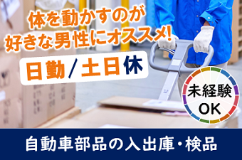 仕事内容 \週休2日で【日勤固定】のお仕事!/時給1350円!未経験者大歓迎!慣れるまで社員の方が優しくサポートしてくれます。 <仕事内容> 自動車部品の入出庫作業・検品作業 ◆箱から部品を取り出し確認・納品書を確認しながら品名と部品のチェック。 ・所定の数量が決まっていますので、その数と差異がないかチェック、報告します。 ◆確認した部品をハンドリフトを使用して指定の位置まで運んでいただきます。 ※積み下ろし等で重量物を取り扱います(15kg未満) ◆空箱の整備部品を取り出した後、空箱となりますので、所定の場所まで運んでいただきます。 ※以上のお仕事は状況によりすべて一人で行うこともあれば専属で行うこともあります。 ◆数量確認をした後に簡単なPC入力をお願いします。 ◆その他の時間は作業場の掃除をしていただきます。 立ち作業でのお仕事です。 《職場環境》 男性が多い職場です。 CDP派遣スタッフが在籍中です。 冷暖房完備です。 ロッカー有り|休憩室完備|売店有り アピールポイント <仕事内容> 自動車部品の入出庫作業・検品作業 ◆箱から部品を取り出し確認・納品書を確認しながら品名と部品のチェック。 ・所定の数量が決まっていますので、その数と差異がないかチェック、報告します。 ◆確認した部品をハンドリフトを使用して指定の位置まで運んでいただきます。 ※積み下ろし等で重量物を取り扱います(15kg未満) ◆空箱の整備部品を取り出した後、空箱となりますので、所定の場所まで運んでいただきます。 ※以上のお仕事は状況によりすべて一人で行うこともあれば専属で行うこともあります。 ◆数量確認をした後に簡単なPC入力をお願いします。 ◆その他の時間は作業場の掃除をしていただきます。 立ち作業でのお仕事です。 《職場環境》 男性が多い職場です。 CDP派遣スタッフが在籍中です。 冷暖房完備です。 ロッカー有り|休憩室完備|売店有り \充実した福利厚生/ ◎社会保険・雇用保険完備 ◎有給休暇有(6ヶ月経過後、10日付与)※規定あり ◎残業手当 ◎交通費支給(規定内) ◎確定拠出年金制度 ◎週払い制度(週3回対応) ◎お友達推薦制度あり(規定有り) ※1名につき3万円~10万円臨時給与として支給 ◎車(マイカー)・バイク通勤OK(無料駐車場あり) ◎制服貸与 ◎冷暖房完備 ◎社員食堂あり ◎食事持参可 ◎ロッカー・休憩室・売店利用可 ◎福利厚生プログラム (宿泊、グルメ、ショッピングなど大幅割引が受けられる10万アイテムのメニューがあります。)