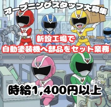 仕事内容 仕事内容 決められた部品を決められた場所へつけるだけ!重量物もないから楽々安心! 作業は初めてで難しいかも...という方でも覚えることが多くないので、すぐに活躍できますよ 塗料は扱わないのでニオイの心配無し 製品の大きさはさまざまですが、コツをつかめば大丈夫! 大きな製品の場合でも重量物の持ち上げはありません 〈勤務地エリア〉 最寄り施設:道の駅 瀬戸しなの から徒歩5分程度 瀬戸市・尾張旭市・長久手市・名古屋市・春日井市・小牧市・多治見市・土岐市・犬山市・丹波郡から通勤の方が多く活躍されています おすすめポイント! 〈推しポイント〉 ・ 勤務シフトがひとつだから体も楽ちん ・ 夜勤専属でしっかり稼げる ・ 新しい工場だからとってもキレイ ・ 年間休日127日でプライベートの計画も立てやすい! ・ おしゃれで落ち着いた雰囲気のカフェテリア風食堂あり ・ 食事はお弁当注文OK! 〈こんなところがおススメです〉 ・社宅入寮OK! ・交通費が別途支給(規定あり) ・駐車場が無料なのもうれしい ・自転車、バイク通勤もOK ・個人ロッカー貸与でセキュリティーもバッチリ! ・制服、作業用具貸与も嬉しいところ ・食事代は給与控除なので余計なお金を持たなくてOK! ・未経験者大歓迎! ・男女関係なく活躍いただけます ・日払いOK(最短翌日受け取り) コレで急な出費があってもこまらない! 〈Q&A〉 Q:初日から夜勤ですか A:教育期間中は日勤(8:30~17:15)での勤務です Q:塗料のニオイが苦手です A:塗料は扱わないのでニオイません Q:どういう世代の方が働いていますか A:幅広い年齢の方がいらっしゃいますのでなじみやすいかと思います Q:応募からどれくらいで就業できますか A:担当者から連絡させていただき、即日面接が可能です。職場見学後、最短3日で就業が可能です Q:社宅はありますか A:ご希望の方へは準備可能です Q:社宅に家具家電はありますか A:生活に必要な備品は一通り揃います。ご希望をお伝えください 他にも聞いてみたいことがありましたら、お気軽にお問い合わせください