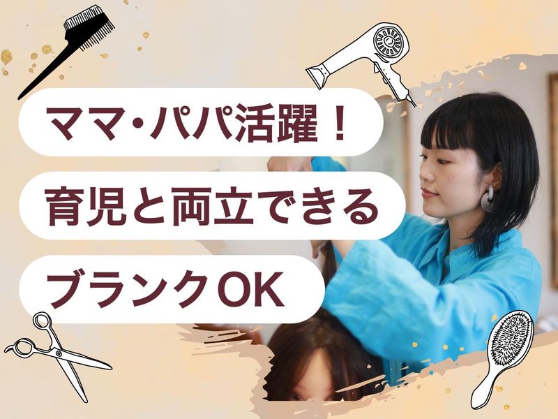 求めている人材 【必須】 *美容師免許 【こんな方にピッタリです!】 *子育てと仕事を両立したい方 *久しぶりの現場復帰を目指している方 *バタバタしたお店より、ゆったりした 環境でお客様を大切にしたい方 *ピアスや髭など、自分らしいスタイルで 働きたい方