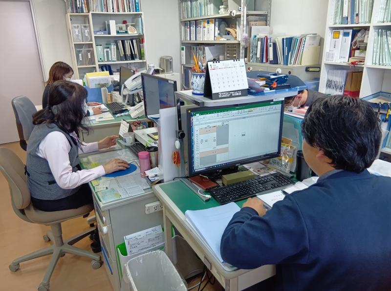 職場環境 子育て中のママさん社員が多いので、 「今日のお夕飯どうする?」なんて 家庭的な会話が飛び交うことも。 仕事帰りにそのままスーパーへ寄って お迎えに行くのもスムーズです。 喫煙所:なし(敷地内全て禁煙)