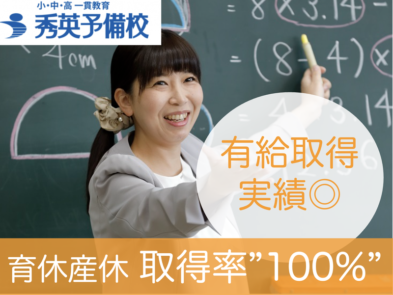 仕事内容 ◆未経験から、教えるプロへ あなたの言葉で、生徒の未来は輝きだす。 「わかった!」が、最高のやりがいに。 ━━━━━━━━━━━━━━━━━━━ 仕事は、生徒の未来を創ること。 あなたの言葉で「わかった!」を引き出し 生徒の人生に、深く、直接関わる仕事。 「先生のおかげ」その一言が原動力に。 あなたの得意を、生徒の未来へ繋げます。 ◆創業49年の信頼と実績。教育の道を、安心の環境で。 塾業界はブラック? 秀英は違います。 ━━━━━━━━━━━━━━━━━━━ 月給24万~32万円/賞与年2回/年間休日115日 勤続年数12年/残業1日1h程度/有給取得率58.6% 長期休暇あり/産休育休取得率100%/男性育休取得率27.3% ”教育業界だから”を、言い訳にしない。 勤怠システムで勤務時間を1分単位で管理。 サービス残業・休日出勤なんて、ありえません。 ◆秀英予備校は「社員全員が教えるプロ」 未経験からでも安心して始められます。 ━━━━━━━━━━━━━━━━━━━ 研修やメンター制度が充実◎ チョークの使い方など一からレクチャーします! 前職が販売・接客、営業など… 異業種から転職した社員が多数活躍中です! 「教える仕事がしたい」という気持ちがあれば大丈夫。 あなたのチャレンジを応援します! ┏━━━━━━━┓ ◆ お仕事内容 ◆ ┗━━━━━━━┛ 小学生から中学生を対象とした黒板を使った 集団授業と、生徒募集活動をお任せします。 担当科目は、 英語・数学から1教科、 理科・社会から1教科 ご希望する計2教科を指導して頂きます。 ■具体的には・・・ ・教材研究 ・授業の予習 ・集団授業 ・生徒の出迎え、見送り ・校舎内掲示 ・質問対応 ・生徒、保護者との面談 ・電話応対 ・コミュニケーションアプリで保護者との連絡 ・生徒募集活動 ◆プロの授業は、準備が9割。 ┏━━━━━━━┓ ◆ 1日の流れ ◆ ┗━━━━━━━┛ 13:30 出社・ミーティング 14:00 授業準備 15:30 休憩 16:30 生徒出迎え・声掛け・デスクワーク 18:20 授業 21:40 授業終了・生徒への声掛け・見送り 22:30 終業 【未経験からでも「教えるプロ」へ】 体系的な研修で、本物の指導力を。 ▼未経験でも安心の研修・サポート体制 ━━━━━━━━━━━━━━━━━━━ 「教えることに自信がない」 という方でも心配いりません。 チョークの持ち方から板書の仕方 生徒との接し方など、トップ講師から直接学ぶ 段階的なカリキュラムを用意しています。 ▼トップ講師の技術を完全マスター ━━━━━━━━━━━━━━━━━━━ 全教科・全レベル対応のトップ講師による映像授業を完全収録。 いつでもどこでも視聴可能です。 授業の予習や、自己研鑽に―― プロの教材でスキルが磨かれます。 ▼専属メンターがデビューまで伴走 ━━━━━━━━━━━━━━━━━━━ 入社後1年間、先輩がマンツーマンで あなたの成長を徹底的にサポート。 授業の練習相手にもなってくれますよ。 【生徒を導く主役。授業に100%集中】 ルーティンワークは、もういらない。 教材作成や事務作業は専門部署が担当。 あなたは「教えること」のプロとして、 生徒と向き合う時間に全力を注げます。 映像授業の活用や、 保護者との連絡アプリの導入など… 業務負担を減らす取り組みを進めており 生徒一人ひとりと向き合う時間を大切にできます。 会社の歯車じゃない。 あなたが、生徒を導く主役です。 【「好き」を仕事に。ずっと、ここで。】 プロとして輝き続けるための環境。 ━━━━━━━━━━━━━━━━━━━ ▼年間休日115日/長期休暇あり しっかり休んで、授業の質も高める。 自己研鑽の時間も確保できます。 ▼月平均残業20時間/有給取得実績◎ プライベートも大切にできるから、 仕事への情熱も燃え続けます。 ▼勤続年数12年 - 平均年齢37.1歳 「秀英予備校は、人がいい」 「働きやすさを追求する社風」 長く働ける環境がここにはあります。 ▼未経験から塾業界へチャレンジした先輩が、 次々とキャリアアップ! ━━━━━━━━━━━━━━━━━━━ 当社では、年齢や社歴に関係なく、キャリアアップ可能。 他業界で培ったスキルや経験を、今度は塾業界で活かしてみませんか? ▼授業・校舎見学歓迎!選考前に何でも相談OK!