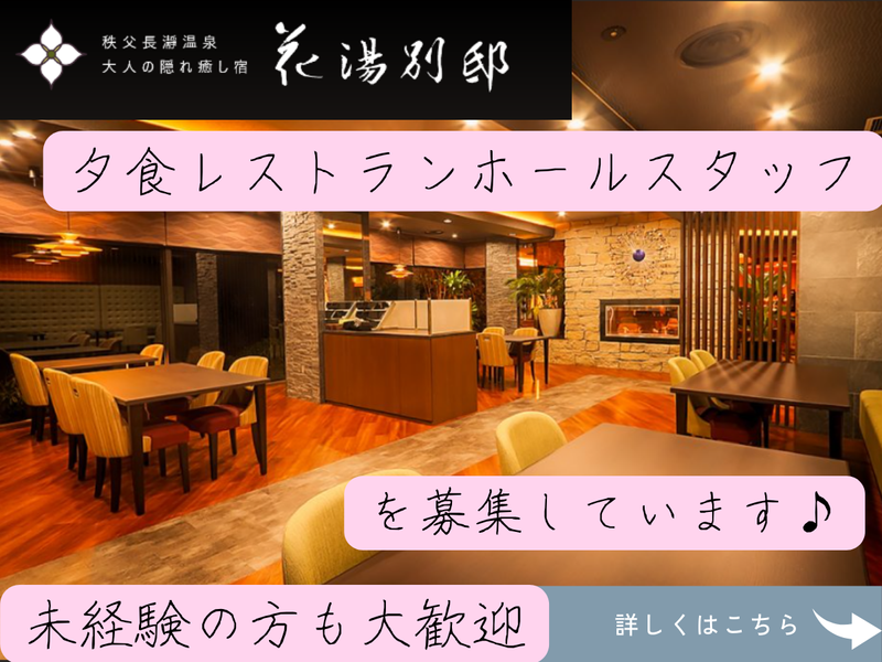 仕事内容 ー・ー・ー・ー・ー・ー・ー 荒川の景観が楽しめる くつろぎの宿・・・** ー・ー・ー・ー・ー・ー・ー 落ち着いた雰囲気の職場で 働きませんか? ホテル内夕食レストランにて、 ・配膳 ・片付け ・グラスやドリンクの補充 などをお任せします! 丁寧なサポートありで 未経験から始めやすいお仕事なので 安心してご応募くださいね** 学生さん活躍中! スキマ時間で稼げる(>v<)b