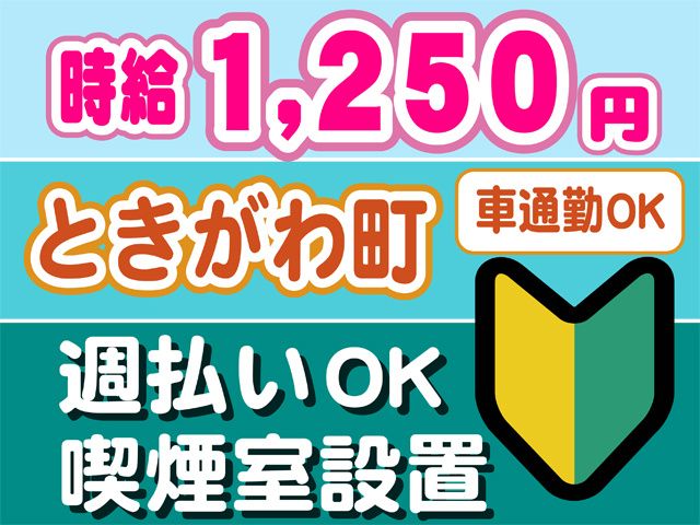 仕事内容 2025年10月にスタートしたばかりの 比企郡ときがわ町のお仕事。 【仕事内容】 自動車部品の製造に関わる以下の作業をお任せします。 ・プレス作業 ・溶接作業 ・組立作業 特別な経験や資格は必要ありません。 現在活躍中のスタッフもほとんどが 未経験からのスタートです! 作業の流れは丁寧に教えますので、 安心して始められます。 【ポイント】 〇未経験OK 〇長期安定 〇高時給1,250円 〇出張面接OK(お気軽にご相談ください) 〇日勤のみ 〇土日祝休みで働きやすい 【福利厚生】 ・交通費支給*当社規定あり ・週払い制度(規定あり) 【こんな経験活かせます】 特別な経験・資格は必要ありませんのでご安心ください。 下記経験者は前職活かせます。 〇検品・箱詰めパート・アルバイト 〇ピッキングパート・アルバイト 〇軽作業パート・アルバイト 〇仕分けパート・アルバイト 〇製造派遣 〇主婦(夫)パート(職種不問) 〇中高年パート 前職不問で採用しております。 (応募フロー) ・ご応募 お電話/メール ・当社から連絡(登録日時設定) ここである程度ご説明できます ・ご登録 簡単、もちろん無料です ・工場見学 色々見れて質問OK ・お仕事開始 さぁ、新生活のスタートです 応募のきっかけは 「ちょっと気になるかも」 ぜひ是非お仕事の説明をさせてください 現在、ティ-・エム・エス鶴ヶ島インター支店 にて面接を受け付けております。 また現場付近においても出張登録も行っております。 Web環境を利用して自宅に居ながら登録出来る Web面接も随時実施しております。 電話でのご連絡もお待ちしております。 TEL. 049-289-4521 (採用担当まで)