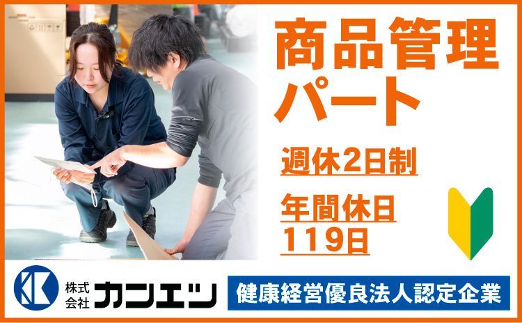 仕事内容 <お仕事のポイント> ・未経験者の方も安心 ・完全週休2日制 ・職場見学OK ・年間休日119日 <仕事内容> 保安用品を取り扱う会社で商品管理を行っていただきます。 ・レンタル商品の入出庫、検収 ・商品の洗浄 ・商品の積み下ろし ・商品の整理、片付け 屋外作業がメインのお仕事です。取り扱う商品は、工事現場で使用する道路安全用品(工事看板、カラーコーン、バリケード等)やブルーシート、土のう等の土木副資材です。 <あると活かせる経験> ・商品管理、入出庫作業 ・検品、ピッキング等の軽作業 ・製造業、運送業、物流倉庫内作業 【健康経営優良法人2025取得】 株式会社カンエツは土木、建設現場、イベント会場などの あらゆるシーンに対応できる保安用品を取り扱っている会社です。 20代・30代・40代・50代の若年層から中高年まで幅広い年代の社員が在籍。 お客様への「安心と安全」だけでなく社員一人ひとりが健康的に働ける環境を目指しています。 ハローワークで求職中の方や第二新卒、臨時社員、アルバイト、パート、 派遣社員として勤務中の方からの転職相談も受け付けております。