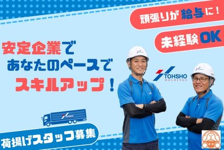 仕事内容 【仕事内容】 作業現場で荷役業務を担う 当社の専門部隊「TSフォース」の一員として 関東エリアの戸建て、マンション、商業施設等の建設現場にて トラックで運ばれてきた石膏ボードや材木などの住宅建材を 指定の場所に運ぶ資材搬入・荷揚げ作業をお願いします。 ■配送エリア:関東一円 ■車両:軽自動車・電車 ■積み降ろし方法:手卸 ■取扱商品:住宅建材(石膏ボード・材木) 【おすすめポイント】 ★入社祝い金【20万円支給】キャンペーン実施中! ★借上げ社宅制度あり!希望社宅応相談! ★頑張った分だけ収入もUP! ★体を動かしたい方にピッタリの仕事! ★ノルマはなく、ご自身のペースで働けます! ★残業は少なく、プライベートの時間も充実! ★学歴不問・高卒OK ★20代・30代・40代の方活躍中! ★特別賞与支給実績あり ★安心の教育体制あり!先輩社員がOJTにて教えます! ★「働きやすい職場認定制度」の二つ星を獲得している企業です! ★全営業所で安全性優良事業所(Gマーク)を取得しています。 所沢市、東久留米市、西東京市、入間市などから 通われている社員さんも在籍中! 【創業60年のトーショーグループに関して】 1964年の創業から60年と長く安定している業界有数の運送会社です。 全国各地で事業を展開。 現時点でグループ全体で34拠点を有し、社員数は800名以上。 大手荷主とお取引が多く、取り扱う商材等の関係から仕事量が安定しています。 また物流だけでなく、旅客や引っ越し、 保険・物販といった多種多様な事業も展開しております。 ≪転職を迷っている方も気軽にご相談ください!≫ ※お車での来社もOKです。 ※お電話での応募も大歓迎! 【ユニフォームを全面リニューアル!】 著名なセレクトショップ「ビームス」の ユニフォームブランド「ユニフォーム サーカス ビームス」が製作を手掛け、 機能性と耐久性を兼ね備えた高品質なユニフォームが完成しました。