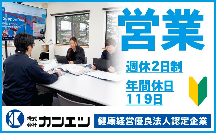 仕事内容 <お仕事のポイント> ・安定の正社員雇用 ・未経験の方も安心 ・普通自動車免許でOK ・年間休日119日 ・完全週休2日制 <仕事内容> 社有車(プロボックスやハイエース)を使用して、 建設会社や販売店などの固定得意先へ保安用品の配送・納品、 商品の不足チェック、新商品のご案内業務を担当していただきます。 主な取扱商品は、 ・カラーコーン ・工事看板 ・土のう袋 ・デジタルサイネージ ・気象観測システム 等 工事現場でよく見かける商品です。 専門知識は一切必要ありません。 入社後は商品や得意先を覚えていただくため 商品の出荷準備補助を行う業務職に配属となりますので、 未経験の方でも安心してはじめることができます。 そこで覚えた知識をもとに6ヶ月以内に営業職へ配属となります。 <とある一日の流れ> 08:30 朝礼・ミーティング 08:50 得意先へ注文商品の配送・納品・新商品のPR 11:20 得意先のイベントに参加 12:00 (昼食) 13:45 得意先の現場事務所に訪問(保安用品の設置確認、不足確認) 16:30 見積書や報告資料作成、電話受付対応等 17:30 退社 <勤務について> 基本は土日祝休みのお仕事ですが、年に数回の土曜出勤があります。 見積書や報告書作成のための事務業務もありますが、 データ入力程度の作業ができればすぐに覚えることができます。 <あると活かせる経験> ・保安用品の取り扱い ・配送ドライバー、運送業 ・営業、販売、サービス業 【健康経営優良法人2025取得】 株式会社カンエツは土木、建設現場、イベント会場などの あらゆるシーンに対応できる保安用品を取り扱っている会社です。 20代・30代・40代・50代の若年層から中高年まで幅広い年代の社員が在籍。 お客様への「安心と安全」だけでなく社員一人ひとりが健康的に働ける環境を目指しています。 ハローワークで求職中の方や第二新卒、臨時社員、アルバイト、パート、 派遣社員として勤務中の方からの転職相談も受け付けております。