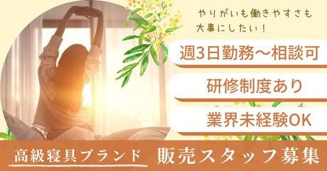 週3日勤務【ノルマなし・未経験OK】高級寝具販売スタッフ