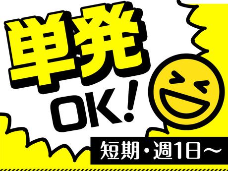 仕事内容 キャラクター靴下のピッキング、検品、梱包 ―― お仕事内容 ―― ★ピッキング └→リストを見ながら商品を集める ★検品 └→商品に汚れや傷がないか確認 ★梱包作業 └→緩衝材などを使用して丁寧に梱包 取り扱う商品は軽量のため、体への負担はナシ! 初めての方でもすぐに覚えられます◎ 週1日~OK!プライベートの予定も組みやすい◎ Wワーカーさんや学生さんに人気のお仕事です! モクモク作業好きにもぴったり☆彡 ▼▼▼▼▼▼▼▼▼▼▼▼▼▼▼▼▼▼▼ スキマ時間や空いている日を有効活用できる! 【スポット】 【短期/単発】 【長期】 【週1日】 【レギュラー】 【短時間】 など 希望の働き方を叶えられちゃいます! まずはお気軽にご応募ください! \登録までの流れ:たったの3STEP♪/ (1)『応募する』ボタンをタップ!*24時間OK! (2)メール記載のURLより登録会の予約をお願いします! (3)面談でしっかりご説明します!これで登録完了♪ ≪まずはかんたん登録×♪WEB面接OK◎≫ ☆採用率99.9%(まずは簡単Web登録♪) ☆お友達との応募も大歓迎! ☆紹介可能案件数は業界TOPクラス! \アピールポイント♪/ ★未経験歓迎 ★経験不問 ★学歴不問 ★年齢不問 髪型も髪色もピアスもネイルも、 基本的にはぜーんぶ自由♪ あなたの好きなスタイルでオシゴト可能です☆ ▼こんな方活躍中▼ ・授業終わりの学生さん ・かけもちのフリーターさん ・Wワークの方 ・お子さまが学校に行ってる間だけ ・子育てが落ち着いた主婦(夫)さん 若手~中高年まで様々な世代の方が和気あいあいと活躍中♪ ▼超・カンタン軽作業が盛りだくさん▼ 「コツコツ作業が好き!」 「ルーチンワークが好き!」 「モクモクと静かな作業が好き!」 アパレル系~コスメ、軽作業から倉庫、ピッキング、梱包、検品、ラベル貼り、タグ付け どのお仕事もすぐに覚えていただけるカンタンなお仕事ばかり♪ \働いた分はすぐGET☆彡/ 「あと1日分だけ稼ぎたい!」 「月々の収入をもう少しだけ増やしたい!」 「お出かけするこの日の分を稼ぎたい!」 「効率よく収入を稼ぎたい」 そんな方達が多数活躍中♪ 初めての派遣、Wワーク、副業の方も日払い・週払いですぐピンチが乗り切れます!