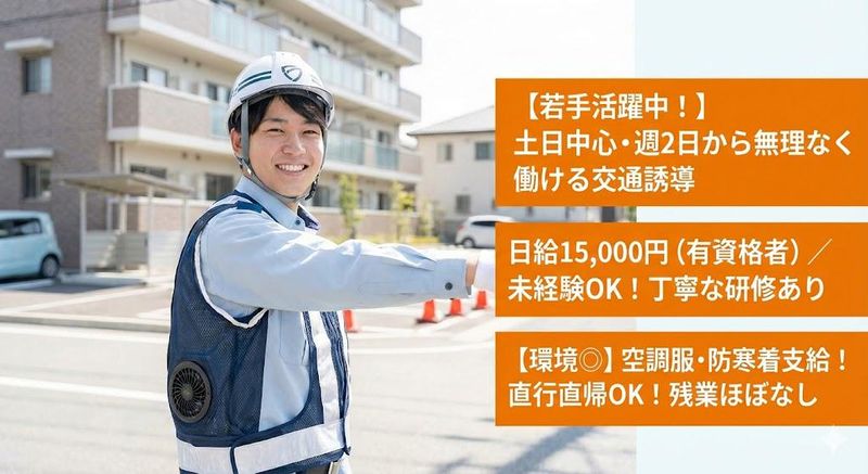 仕事内容 【ポイント】 ✅ 土日のみ週2日勤務で無理なく働ける ✅ 日給14,000円で安定収入 ✅ 扶養内勤務もOK ✅ 簡単に覚えられるから未経験の方も安心 ✅ 固定現場で落ち着いてスタート ✅ 現場へ直行直帰OKで通勤ラクラク ✅ 40代~70代が中心に活躍中 ✅ シフト相談しやすく、家庭や趣味との両立も可能 【仕事内容】 ・マンション建築に伴う交通誘導業務 ・工事関係車両の出入り時の案内や歩行者の誘導 ・特別な知識やスキルは不要 ・固定現場が多く、毎回違う現場で不安になる心配なし ・土日勤務なので、平日は家事や趣味、家族の時間を優先可能 【こんな方にピッタリ】 ・週2日だけ働き、生活に少しゆとりを持ちたい ・体を動かして健康維持したい ・孫へのプレゼント代を稼ぎたい ・扶養内で無理なく働きたい 【スタッフの声】 ・50代スタッフ(未経験) 「土日だけ働けるので、平日は趣味や家のことに使えます。固定現場なので慣れると安心です。」 ・60代スタッフ(勤務3年目) 「週2日でも収入の足しになり、生活にゆとりが出ました。同年代の仲間もできて楽しく続けられます。」 ・70代スタッフ(勤務1年目) 「無理なく続けられるのがありがたいです。孫へのプレゼント代も確保できて嬉しいです。」 【勤務時間例】 ・土日のみ/8:00~17:00(休憩あり) ・勤務日数やシフトの希望は柔軟に相談可能 【現場について】 ・スーパー駐車場での交通誘導 ・最寄り:相鉄線「鶴ヶ峰駅」徒歩8分 ・直行直帰OKで通勤ラクラク ・40代~70代が活躍する働きやすい現場