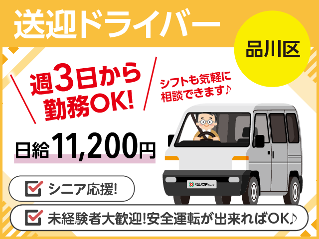 【戸越銀座駅より徒歩8分】送迎ドライバー!日給11,200円!週3日~勤務OK!